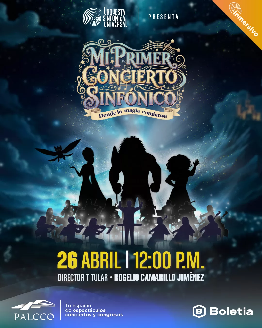 La Orquesta Sinfónica Universal presenta una producción cuidadosamente diseñada para que los niños vivan su primer encuentro con la música sinfónica en un ambiente de excelencia artística. A través de un programa lleno de color y fantasía, que incluye música de Disney, así como temas de animaciones y personajes actuales, los pequeños podrán conocer los sonidos de cada instrumento y experimentar la grandeza de una orquesta profesional en vivo.